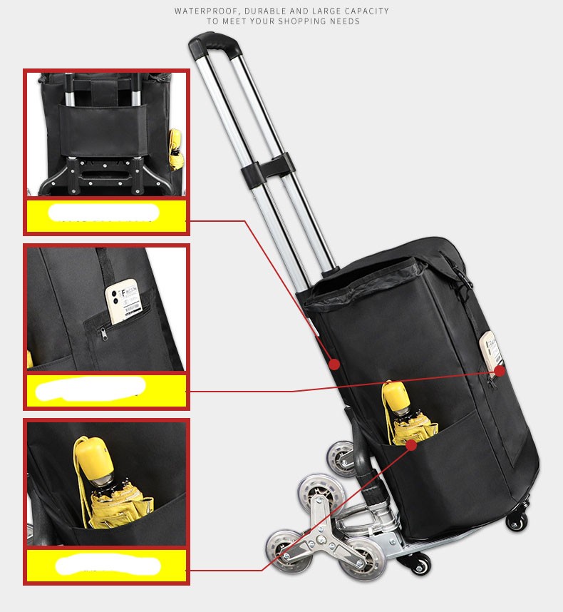 Aluminium Alloy Frame Powder Coated Trolley Retractable Handle Foldable Portable Shopping Cart Stair Climbing Hand Truck