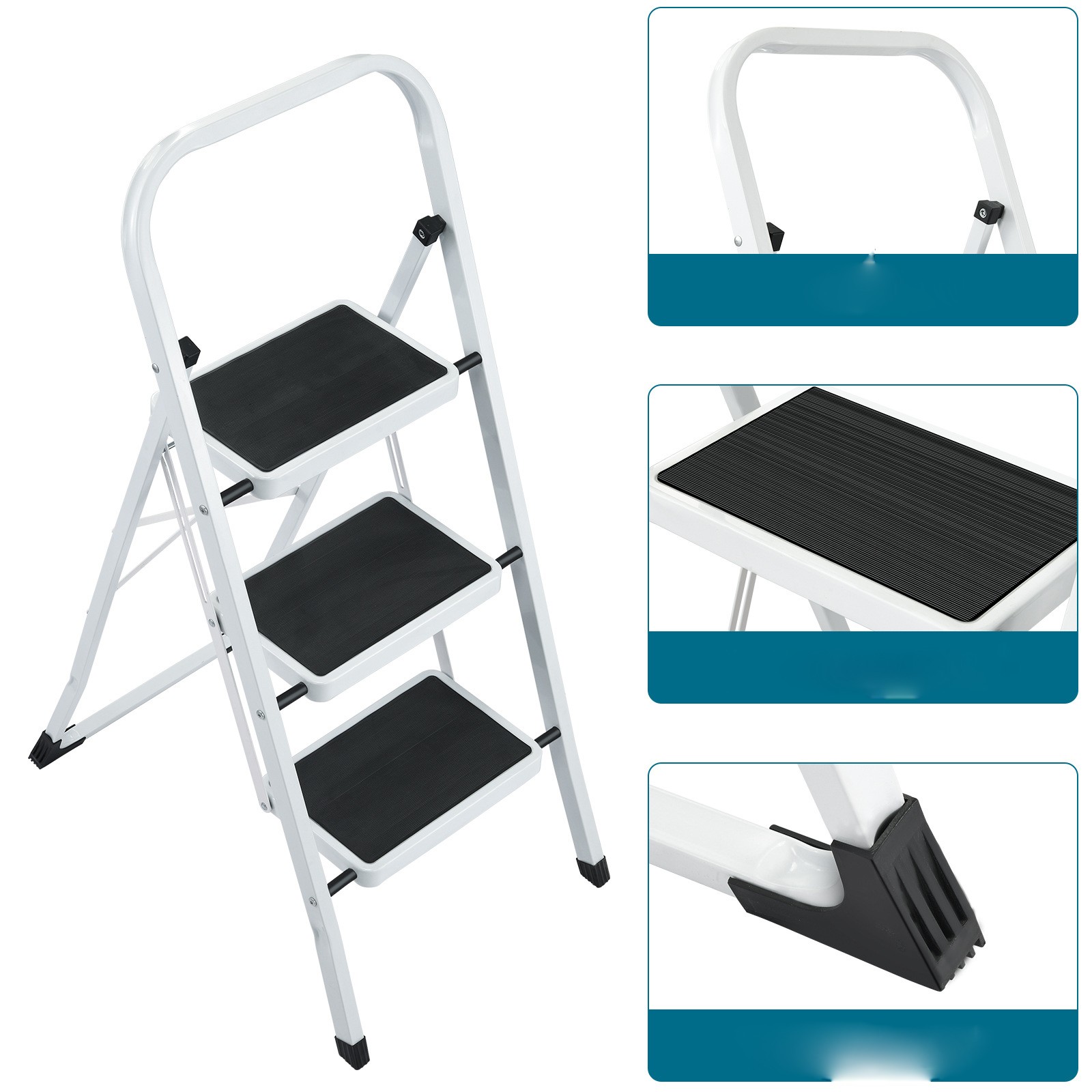 Lightweight Foldable 2/3/4 Step Steel Ladder with Anti-Slip Pedals Folding for Household Office Apartments