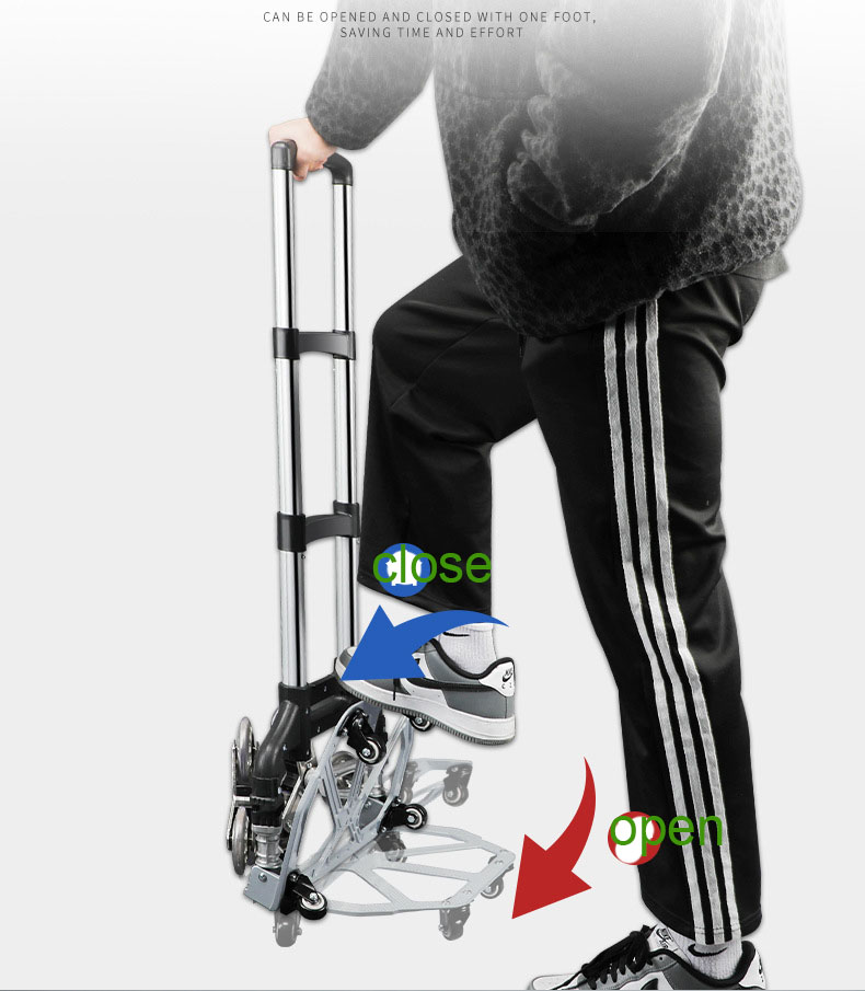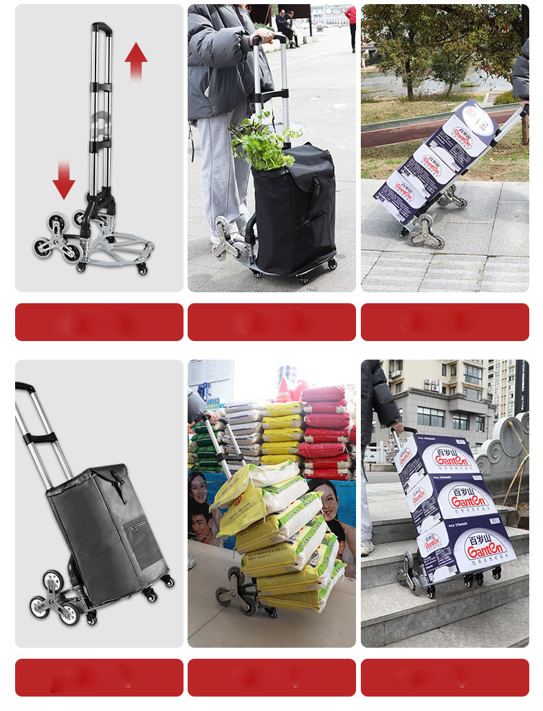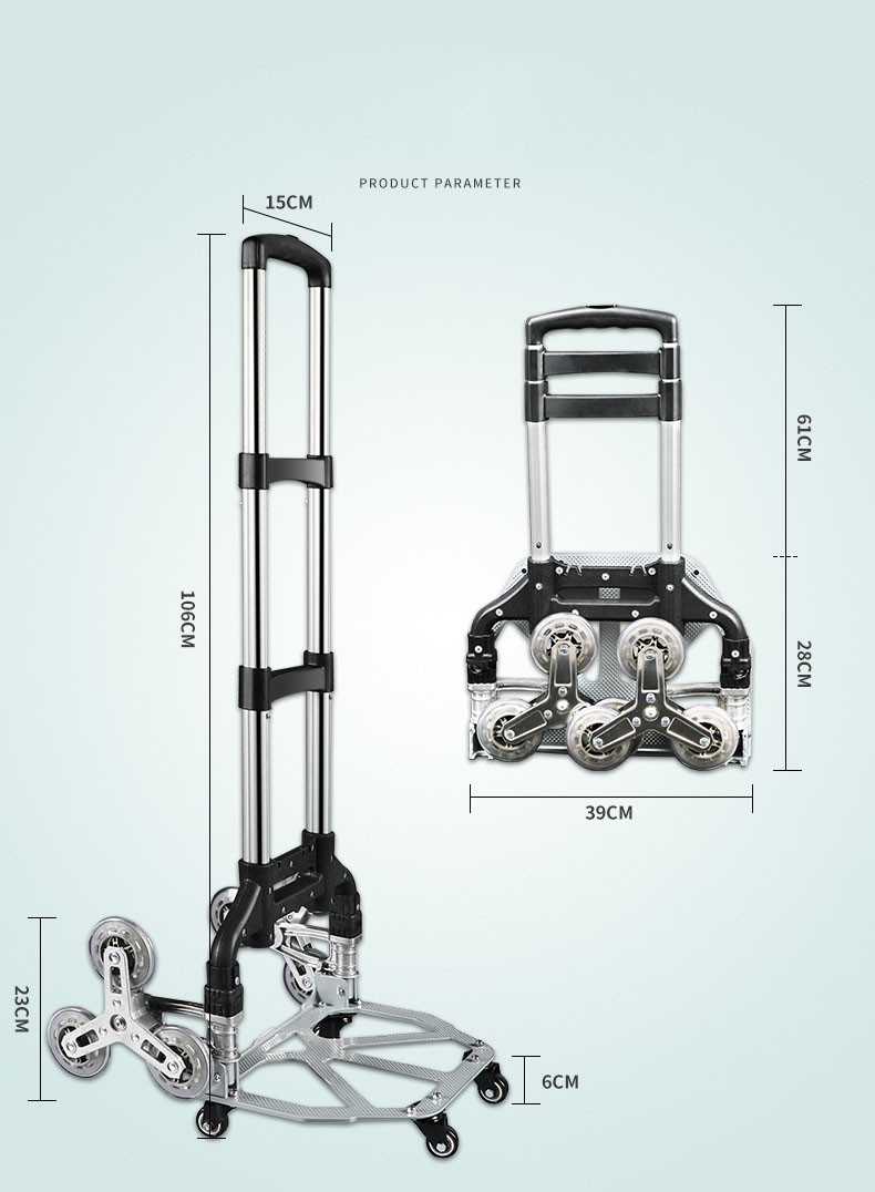 Aluminium Alloy Frame Powder Coated Trolley Retractable Handle Foldable Portable Shopping Cart Stair Climbing Hand Truck