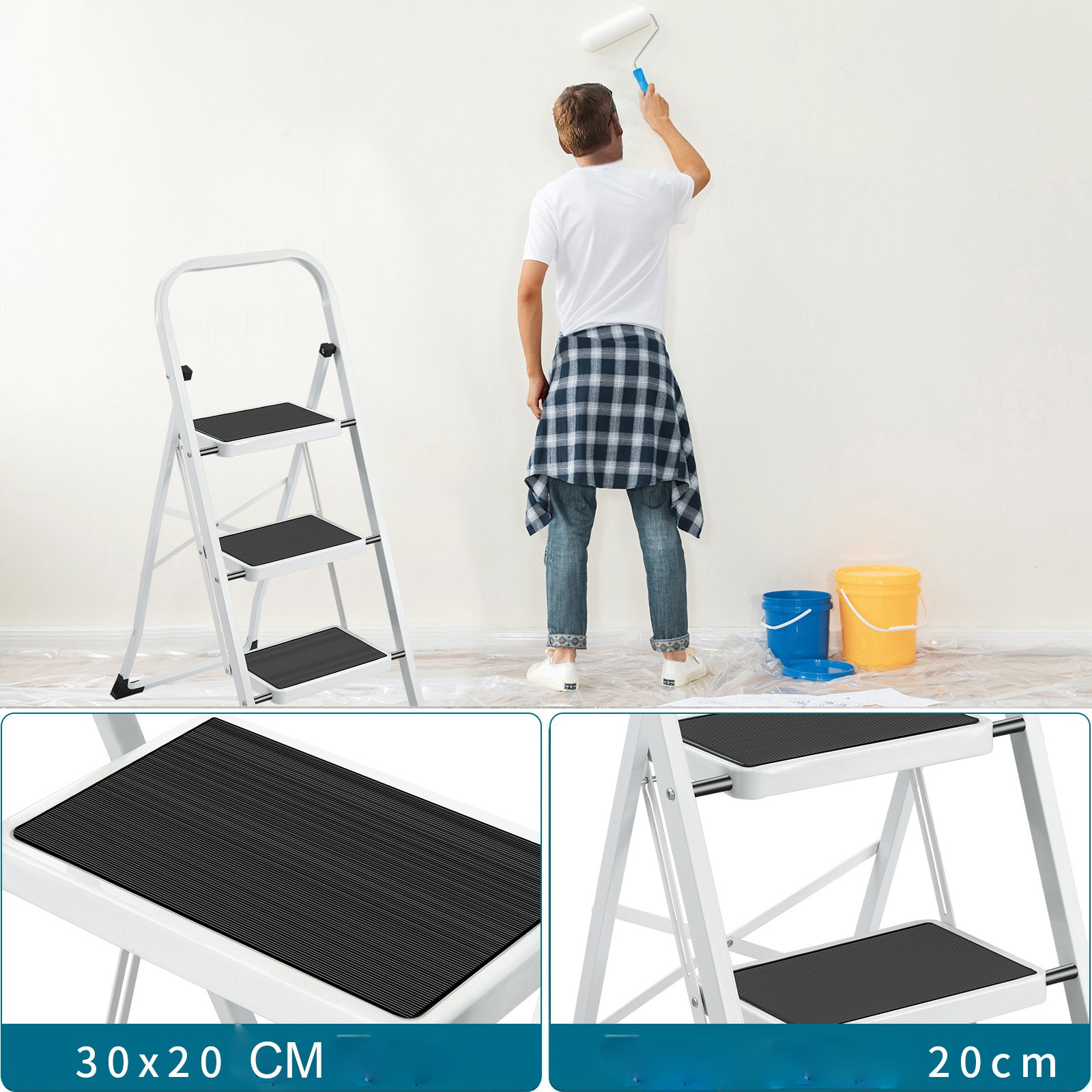 Lightweight Foldable 2/3/4 Step Steel Ladder with Anti-Slip Pedals Folding for Household Office Apartments